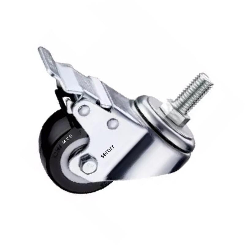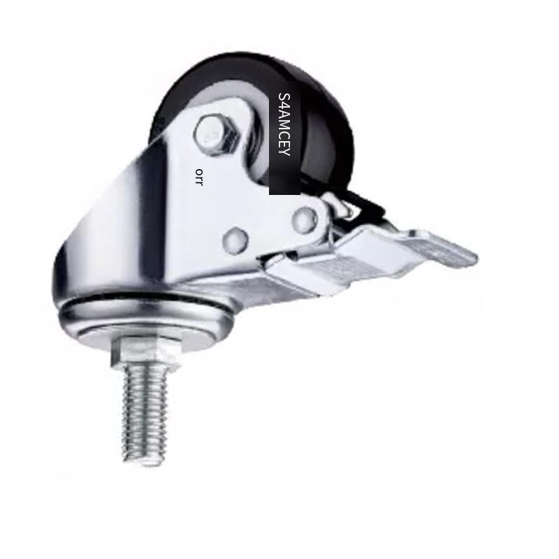 1.5 Inch Black Caster with Double Brake 4pcs Pack Polyurethane (PU) Caster Medium Light Double Ball Bearing Universal Wheel - 4pcs