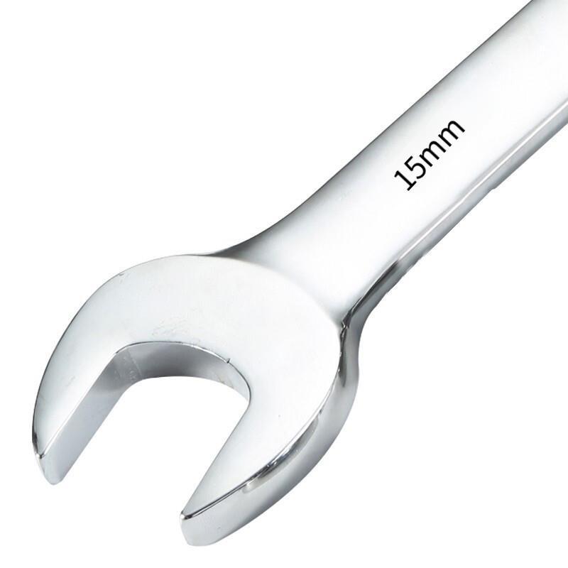 15mm Ratchet Wrench Box Open End Fixed Head Wrench Multi Function Quick Automatic High Torque Chrome Vanadium Steel