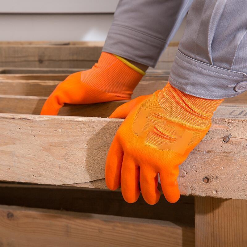 12 Pairs Of Free Size Polyethylene Safety Gloves Dipping Nitrile PU Orange Work Gloves Coated Gloves Work Protective Gloves