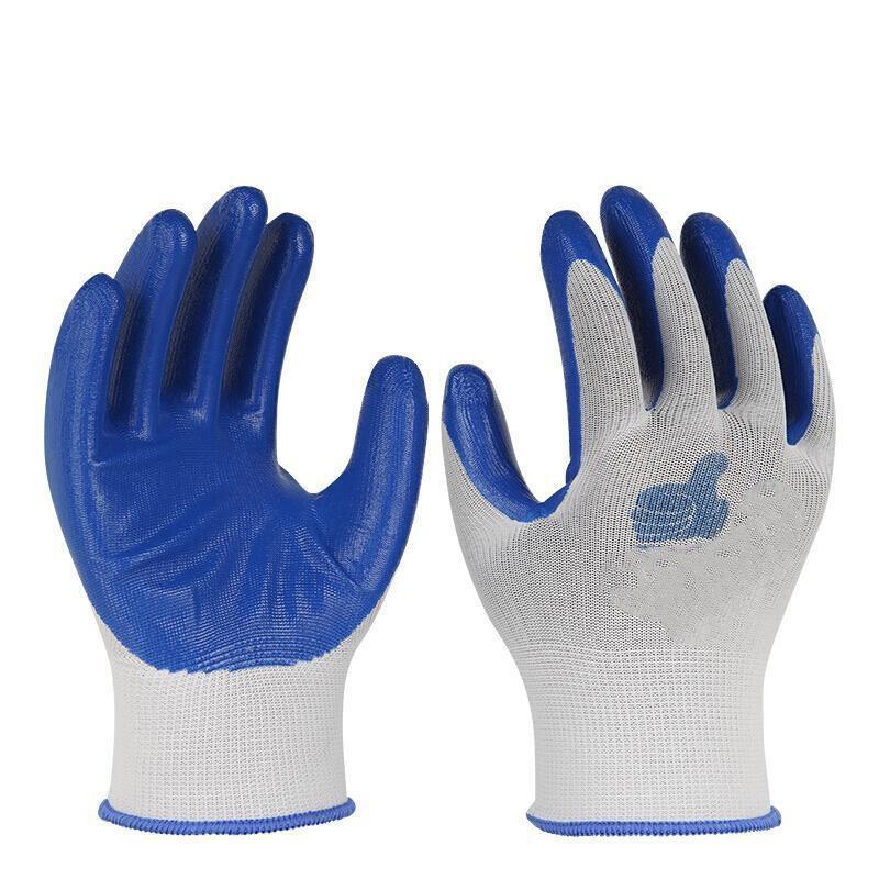 Labor Protection Nitrile Gloves Glued Coating Anti Slip Wear Resistant Breathable Oil Resistant Acid And Alkali Resistant Site Work Protection Gloves White 12 Pairs Free Size