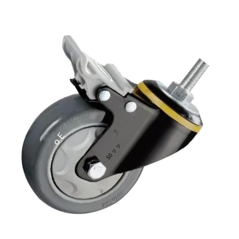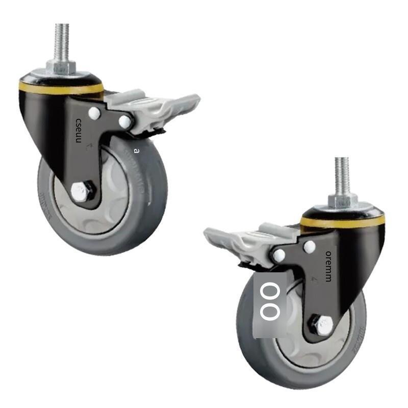 3 Inch Medium Duty PU Casters 4pcs Set with Double Brake Dark Gray Polyurethane Casters with Double Ball Bearing Universal Wheel - 4pcs