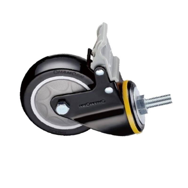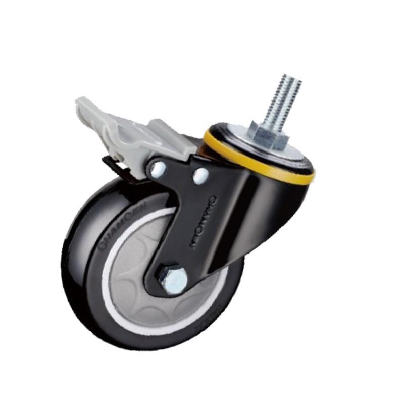3 Inch Plastic Medium Duty Casters 4Pcs Black Polyurethane (PU) Caster with Double Brake Single Ball Bearing Universal Wheel - 4Pcs