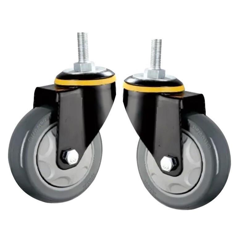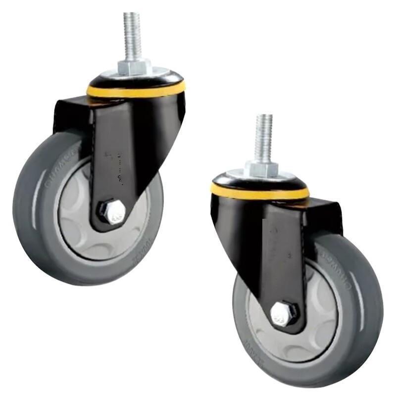 4 Sets 4 Inch Lead Screw Swivel Casters Activity Dark Gray Polyurethane (PU) Caster Medium Double Ball Bearing Universal Wheel