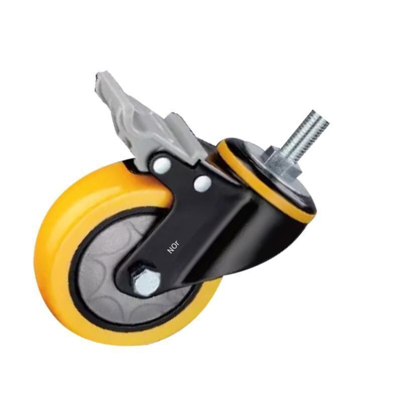 4Pcs Plastic Double Brake Caster Wheels 4 Inch Orange Yellow Polyurethane (PU) Caster Medium Duty Single Ball Bearing Universal Wheel - 4Pcs Pack