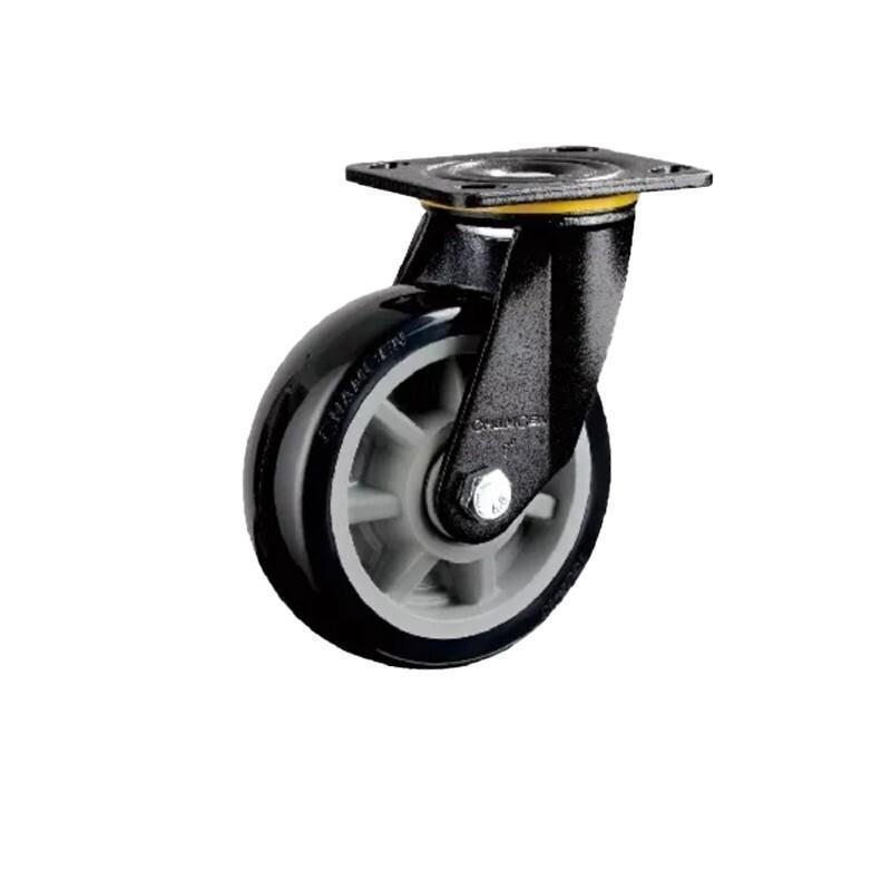 5 Inch Plate Swivel Casters 4PCS PU Heavy Duty Wheels Gray Core Black Polyurethane Caster Universal Wheel - 4PCS