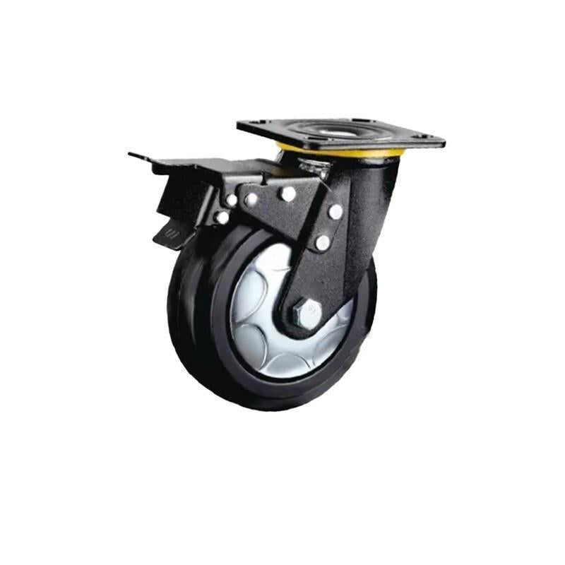 6 Pieces 8 Inch Flat Bottom Caster Wheels Double Brake Heavy Black High Elastic Natural Rubber (ER) Caster Universal Wheel