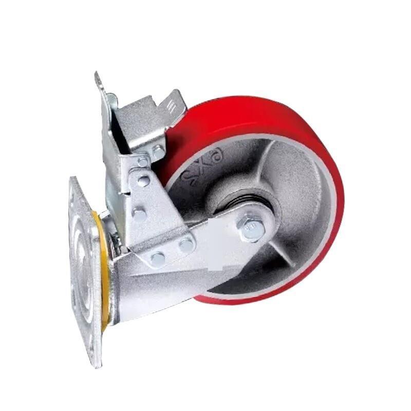 8 Inch Heavy Duty Plate Swivel Casters Iron Core Red Polyurethane Caster Flat Wheel with Double Ball Bearings Universal Wheel - 1Pcs