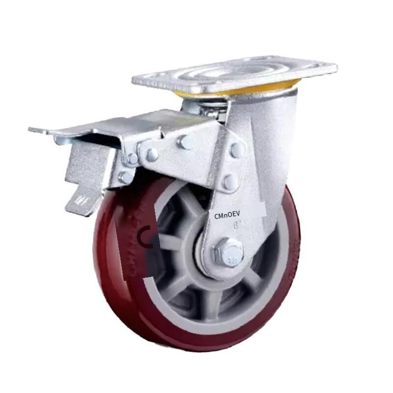 8 Inch Swivel Caster Wheels with Double Brake 6PCS Pack Heavy Duty Jujube Red Polyurethane (PU) Caster Universal Wheel - 6PCS