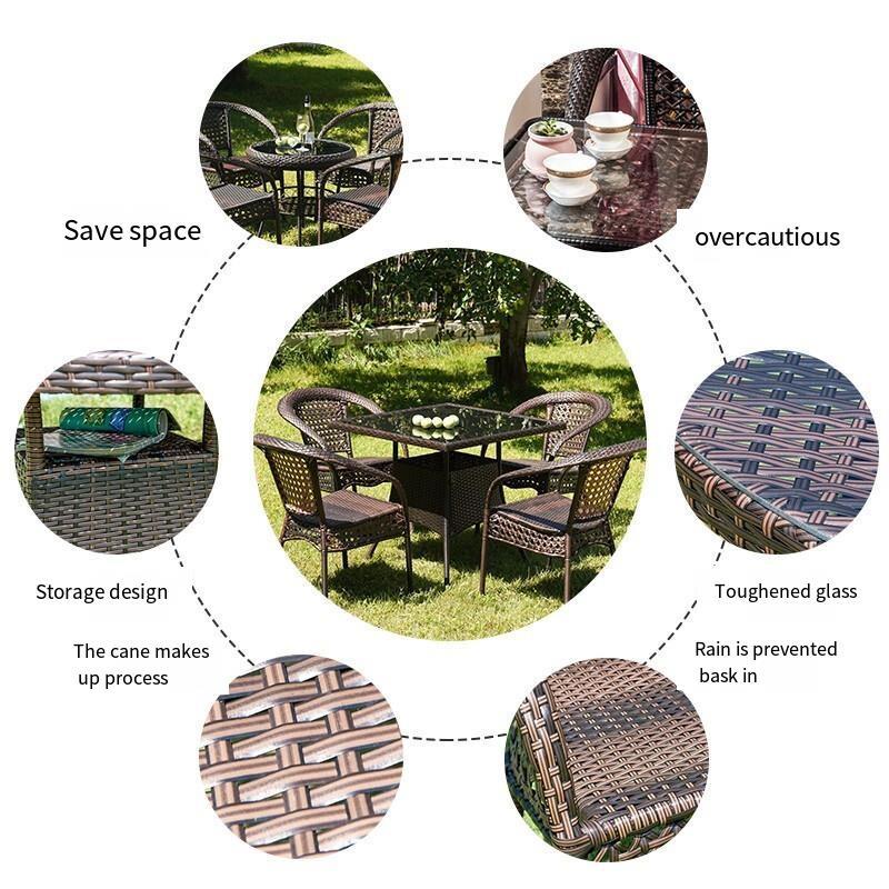 Balcony Table And Chair Small Tea Table Rattan Chair Leisure Tea Table Courtyard Rattan Chair 60 Wide Edge Round Table + Two Chairs