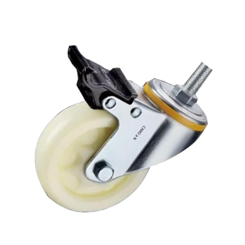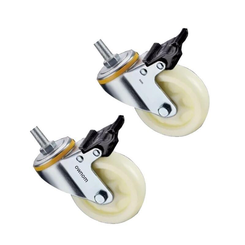 B7-2.5 Inch Lead Screw Plastic Double Brake Beige Polypropylene (PP) Caster Medium Double Ball Bearing Universal Wheel 4 Sets / Set