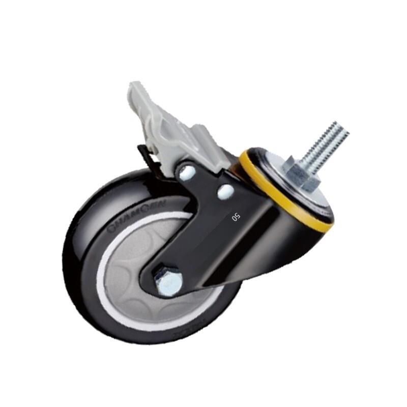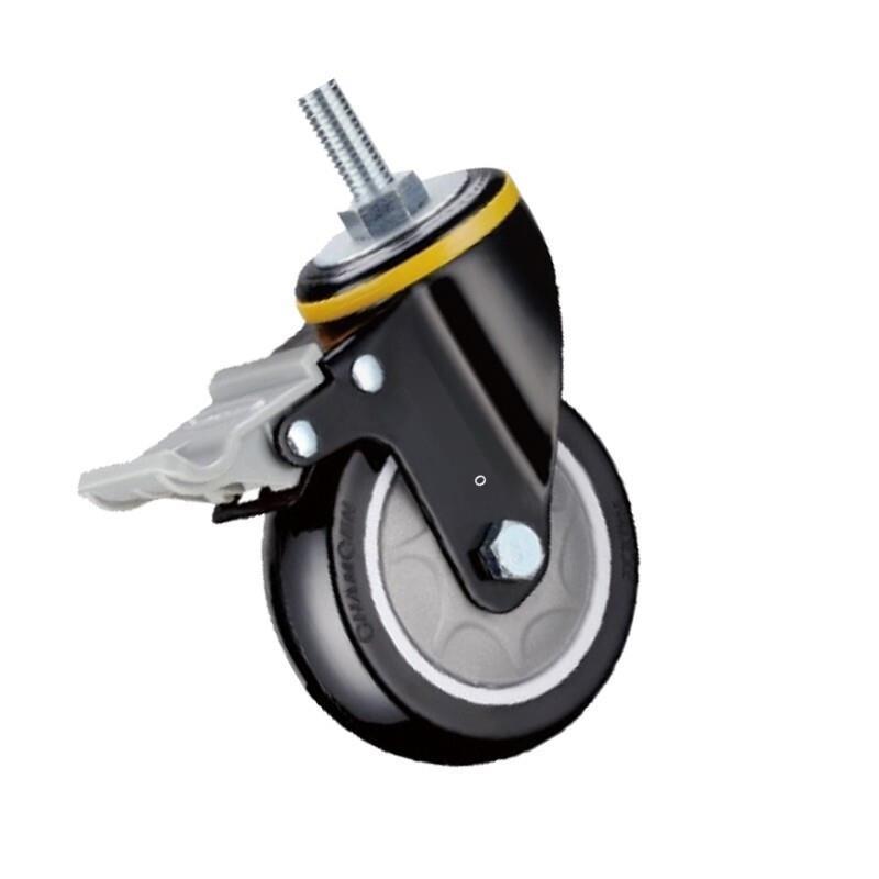 Black 5 Inch Plastic Caster with Double Brakes 4pcs Pack Polyurethane (PU) Caster Medium Single Ball Bearing Universal Wheel - 4pcs