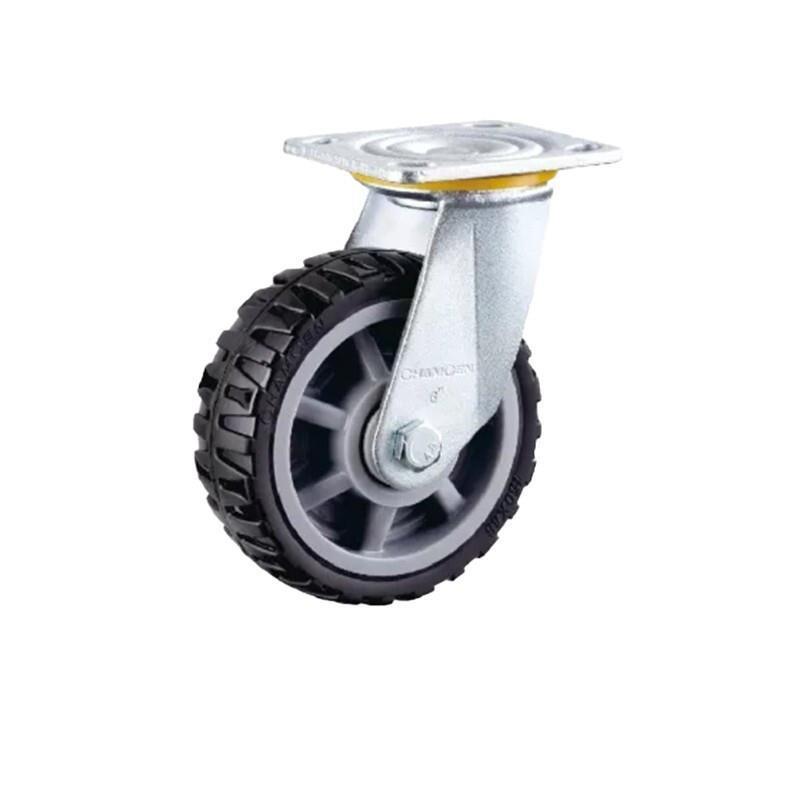 Black Antiskid 6 Inch Plate Swivel Casters 4pcs Set Flat Bottom Movable Polyurethane (PU) Caster Heavy Duty Universal Wheel - 4pcs