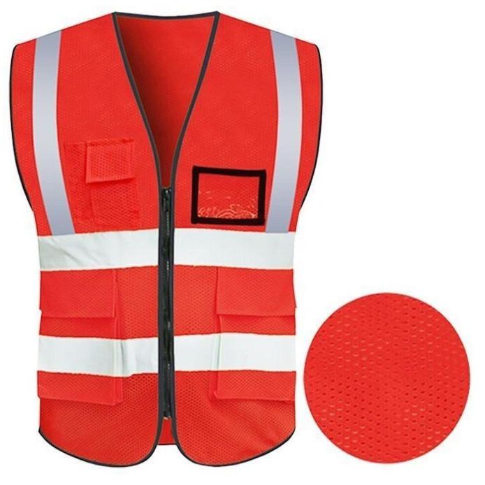 6 Pieces Scarlet Breathable Mesh Multi Pocket Reflective Vest Traffic Protection Reflective Vest Warning Clothing Construction Road Maintenance