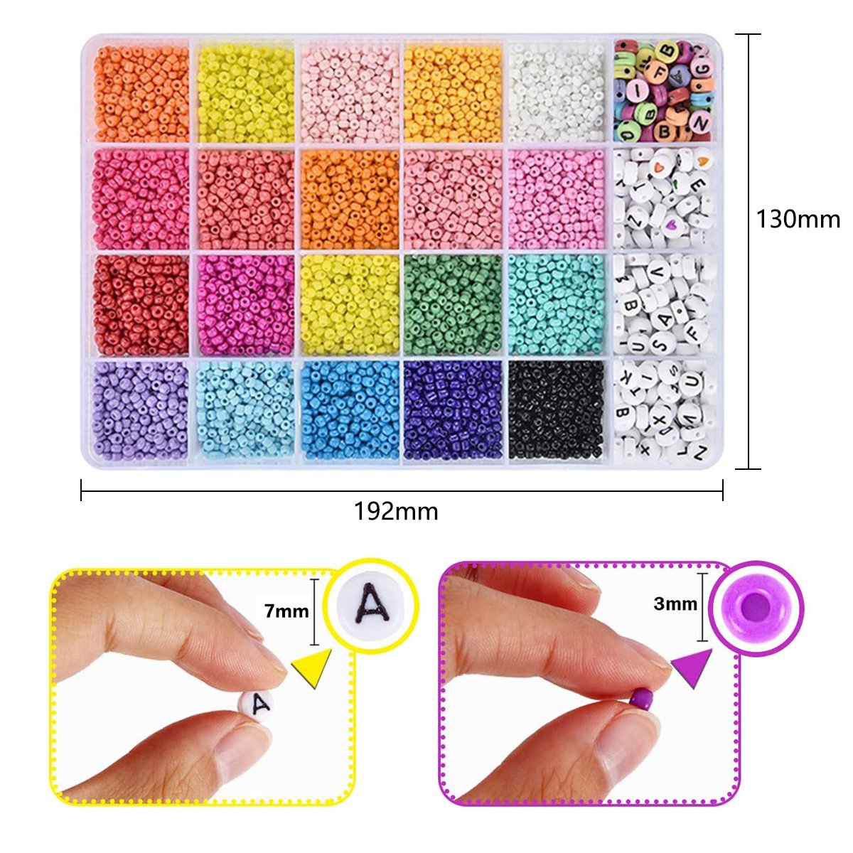 【Specially designed for diy handmade】Beads are very suitable for making children's crafts. There are 1200 different types of 3mm beads, with a variety of colors to choose from, as well as black letter beads on a white background, with 24 grids and 1 coil of thread.