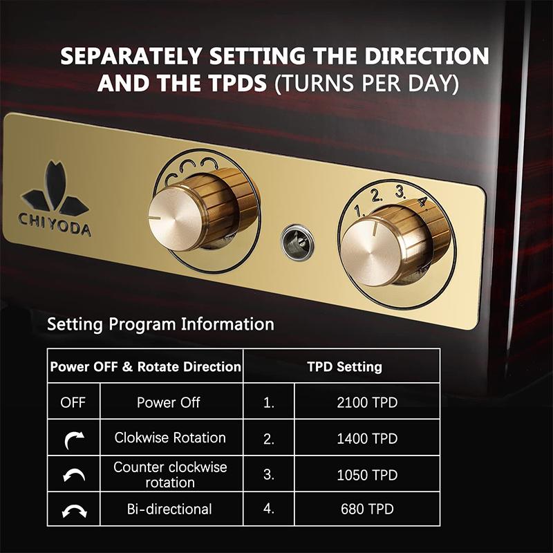 [12 Modes Available For choose] 4 TPDs - Turns Per Day ( 650-990-1300-2000 TPD and 3 kinds of directions (clockwise, counterclockwise, both) can be separately set, which make this product have 12 Modes available for setting, can be suitable for almost all watches in the market. Each TPD has the same rotation speed but different interval times. It turns at regular intervals to keep the automatic wound and accurate when not on the wrist.