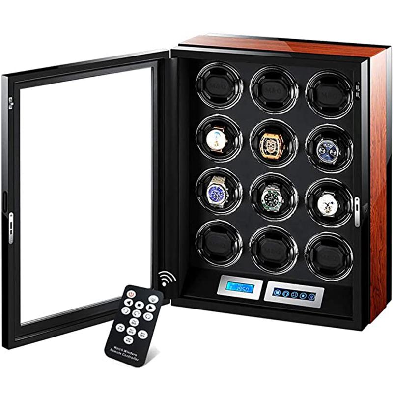 CHIYODA Watch Winder For 12 Watches, Automatic Watch Box With Quiet Mabuchi Motor & LCD Touch Screen & Remote Control