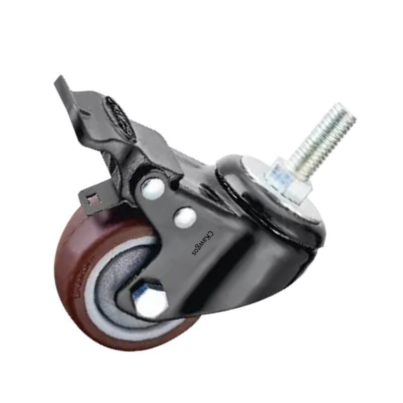 H4-2 Inch Lead Screw Plastic Brake Coffee Colored Synthetic Rubber (TPR) Caster Light Single Ball Bearing Universal Wheel 4 Sets / Set