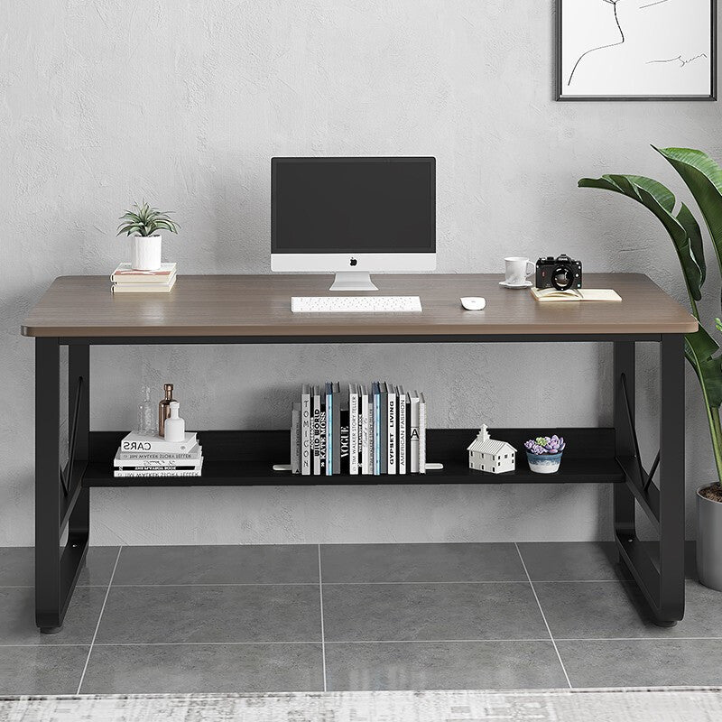 [Stable for Use] This office desk utilizes steel and wood. Thickened steel pipe of the desk legs and triangular mechanics design greatly enhance the load-bearing capacity of the table. It is stable for use. You can use it with confidence.