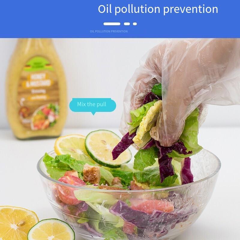 6 Bags Disposable Transparent Household PE Gloves Food Catering Waterproof Protective Gloves 100 Pieces / Bag