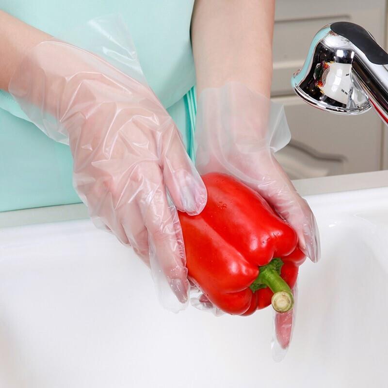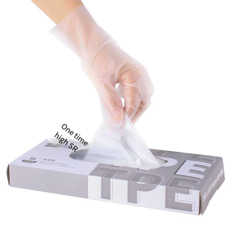 6 Pieces Disposable 100 Pieces S Size TPE Gloves Food Processing Workshop Family Hotel Thickened Gloves Transparent Blue Gloves