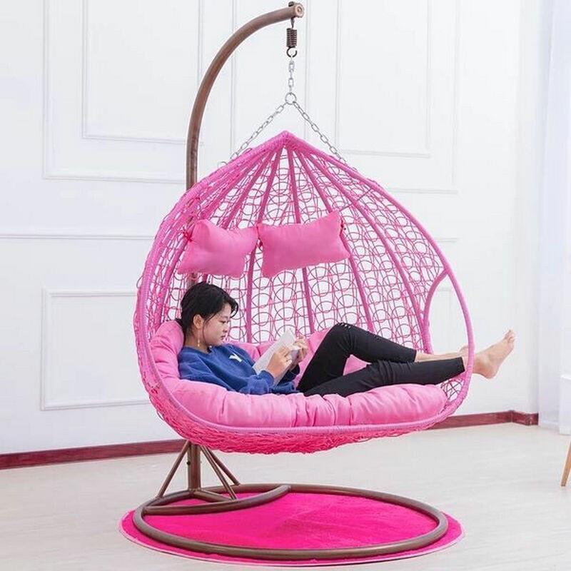 Double Wicker Chair Hanging Basket Indoor Swing Swing Hammock Balcony Courtyard Cradle Chair Red And Black