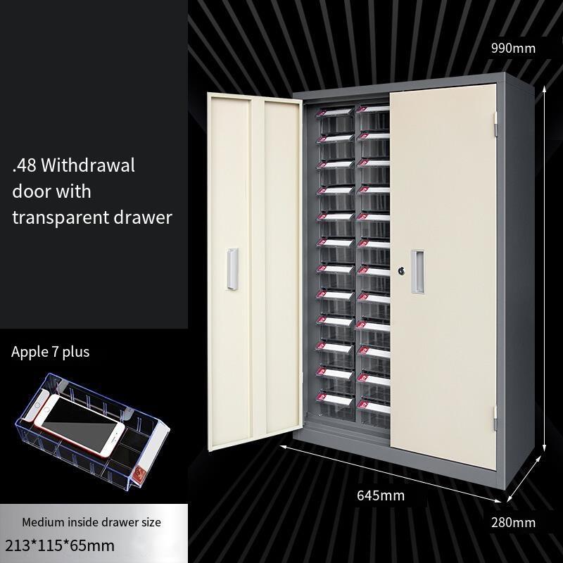 Drawer Type Tool Cabinet Thickened Metal Component Customized Parts Sample Lock 48 Draw Door Parts Cabinet [with Transparent Medium Drawer]