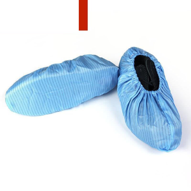25 Pieces Dust-free Anti-Static Cover Reusable Shoe Covers Blue Stripe Polyester Fabric Cover Comfortable Breathable Shoe Cover 36cm