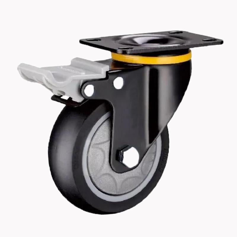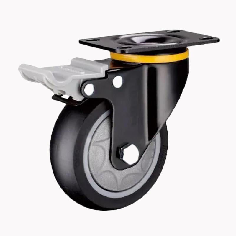 3 Inch Flat Bottom Plastic Double Brake Black Polyurethane (PU) Caster Medium Universal Wheel 4 Sets / Set