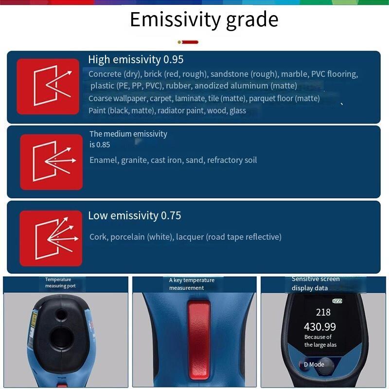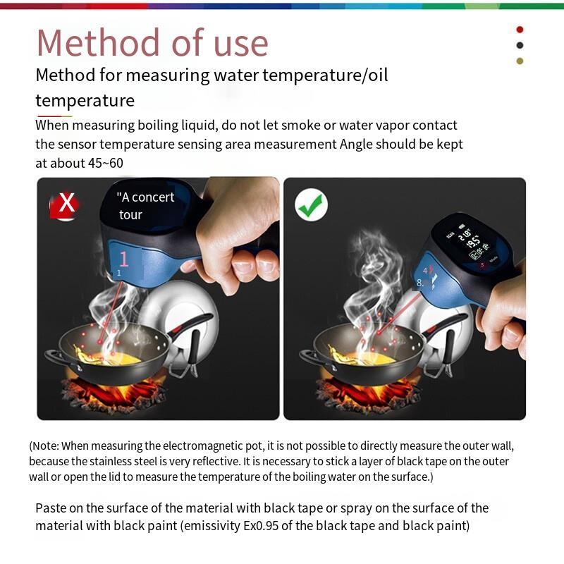 High Precision Infrared Thermometer Temperature Screening Industrial Thermometer Gun for Oil Temperature Air Conditioning Motor Electrical Cable High and Low Temperature