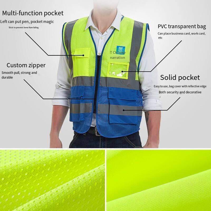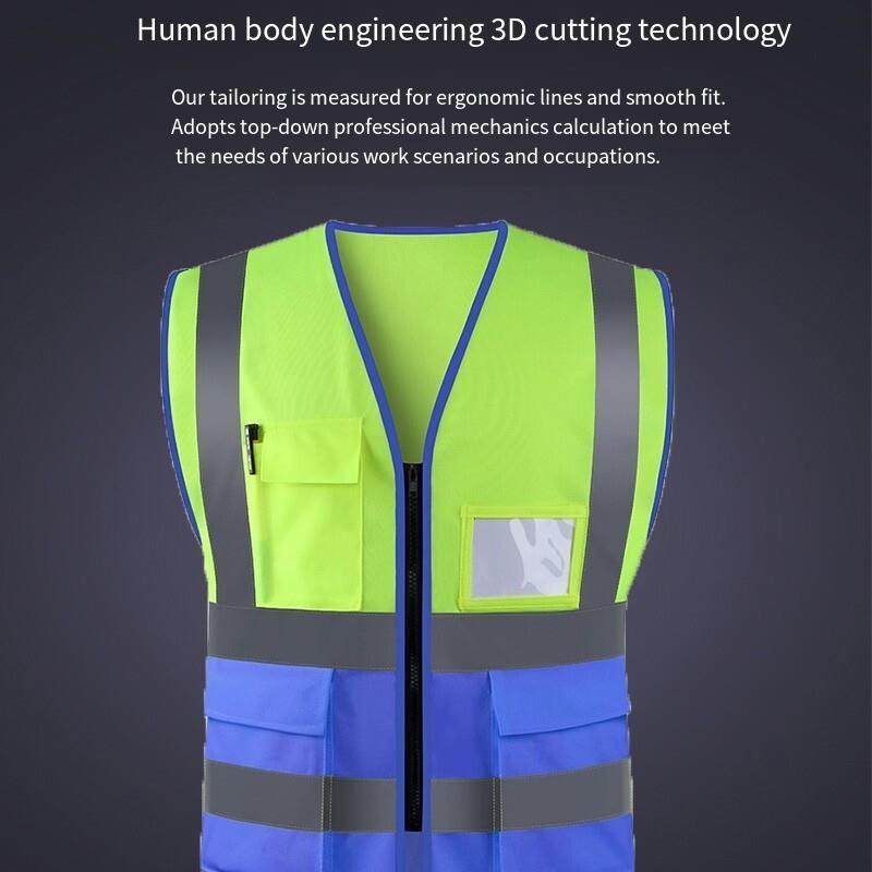 6 Pieces High Visibility Reflective Safety Vests with Pockets and Zipper Front 2 Highly Reflective Strips for Safety Working Running - Fluorescent Yellow+Blue