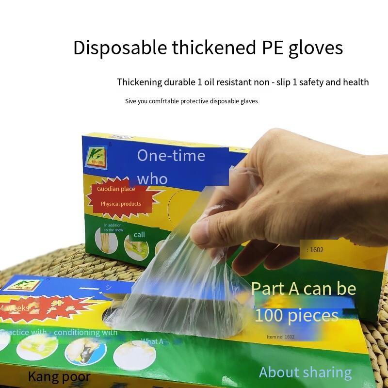 Transparent Disposable Crawfish PE Gloves Kitchen Clean Food Catering Baking Beauty Hairdressing Thickened Film Gloves Box Extraction Type 100 Pieces 100 Pieces / Box Free Size