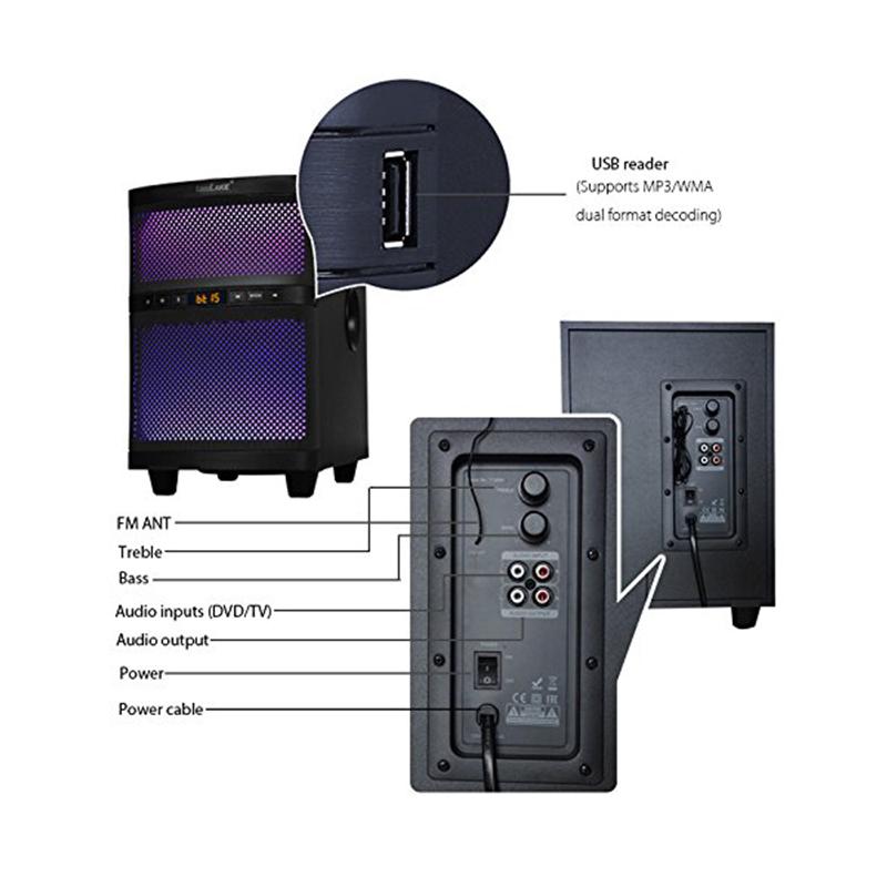 Multi-Media Devices Can Be Connected with Speaker LuguLake TV Bar, with 5-color LED lights, can be shut off, is definitely a nice decoration in the house.