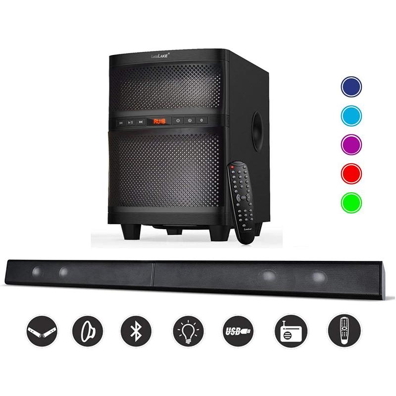 [Eyes-Catching LED Lights] - LuguLake TV Bar, with 5-color, LED lights in wood subwoofer, is definitely a nice decoration in the house. This speaker expands the applicable environments. You can use it at the party, at the studio, at yoga, at the gym, at home theater, or living room.