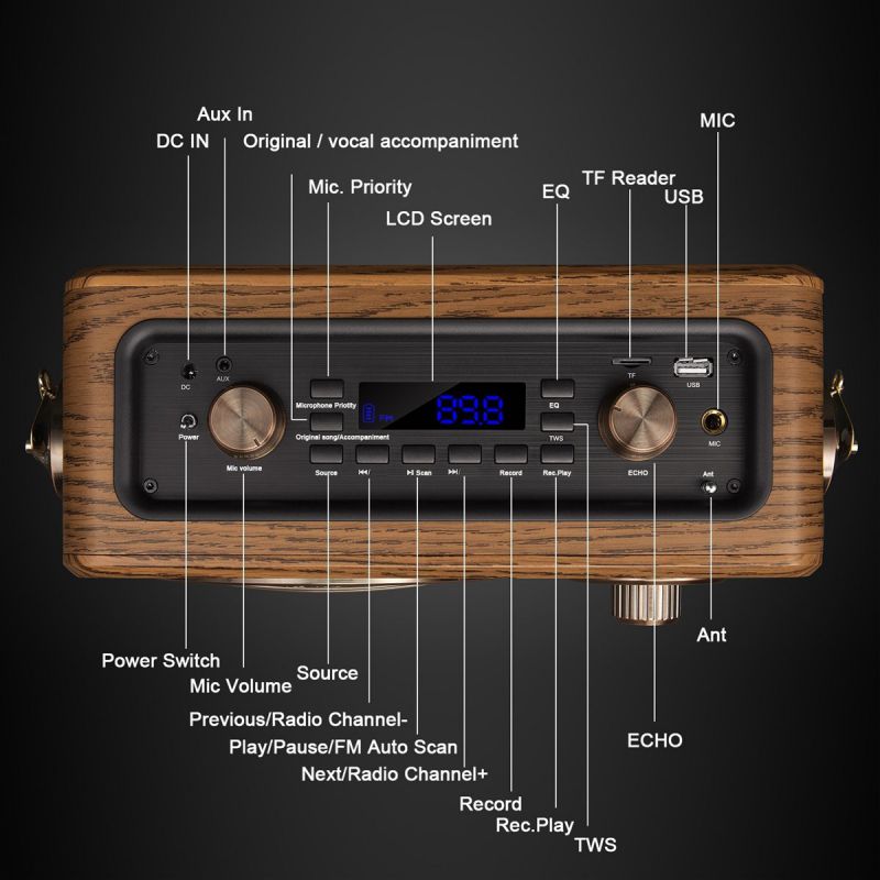 [10-in-1 Multi-Function] - FM Radio with antenna, Microphone Inputs, Original/Accompany, Remote Control, USB Flash Drive, TF Memory Card Readers, Bluetooth, TWS, EQ, Record and Play through the Speaker System