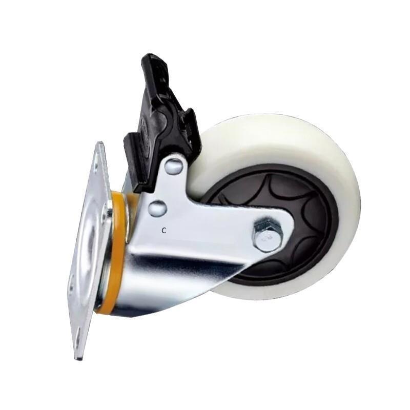 Flat Bottom Plastic Double Brake Milky White Polypropylene Caster Medium Universal Wheel 4 Sets / Set