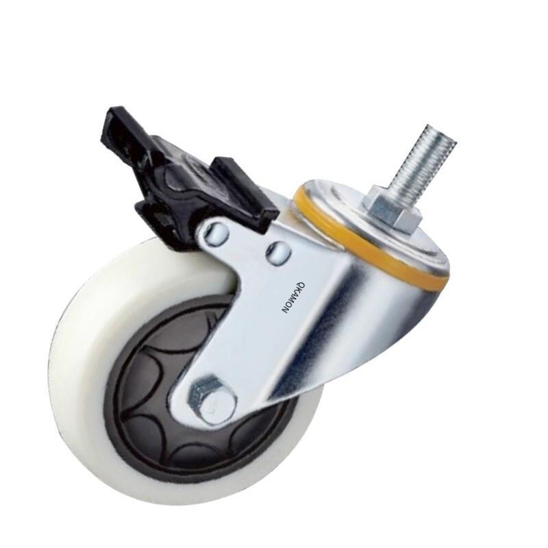 b1-2.5 inch lead screw plastic double brake milky white polypropylene (PP) caster medium single ball bearing universal wheel 4 sets * 1
