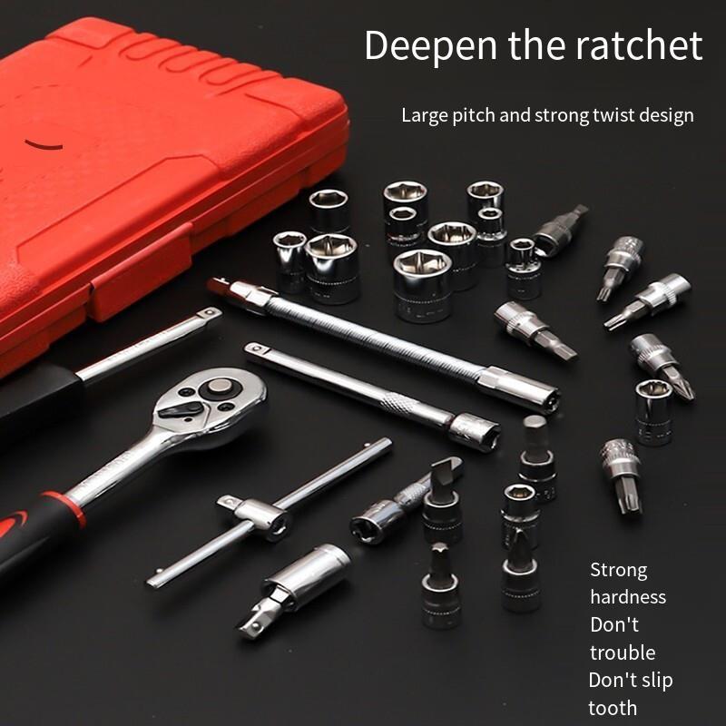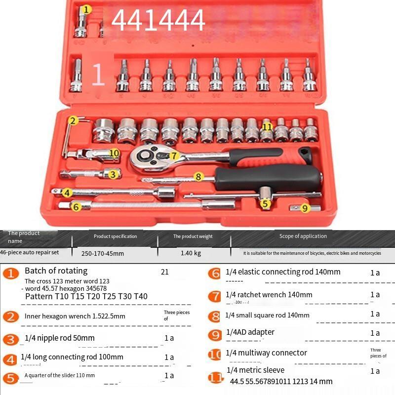 Multi-functional Socket Tool Set Ratchet Wrench Manual Wrench Automobile Socket Wrench Repair Tool Set Wrench Socket Toolbox 46 Pieces / Box