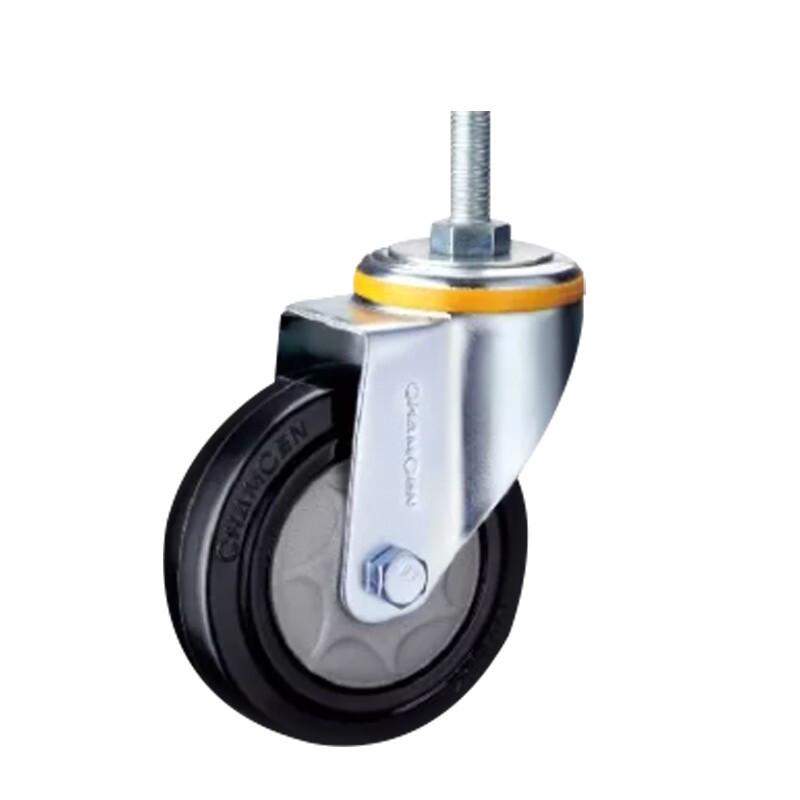 B5-4 Inch Lead Screw Active Black High Elastic Natural Rubber (ER) Caster Medium Single Ball Bearing Universal Wheel 4 Sets / Sets