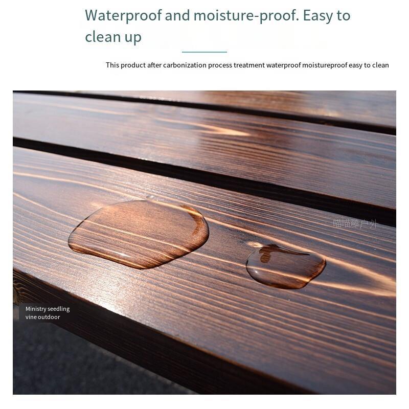 Outdoor Balcony Table And Chair Solid Wood Tea Leisure Three Piece Set Courtyard Carbonized Anticorrosive Wood Table And Chair Combination Length 120cm