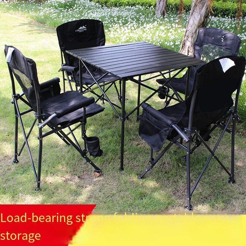Outdoor Folding Portable Ultra Light Chair Leisure Folding Table Portable Fishing Chair One Table And Four Chairs (All Cloth Black)