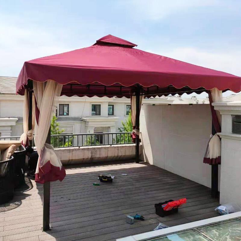 Outdoor Large Sunshade Tent Four Foot Pavilion Villa Courtyard Large Roman Tent Umbrella 3 * 3m + Gauze Curtain + Wai Cloth