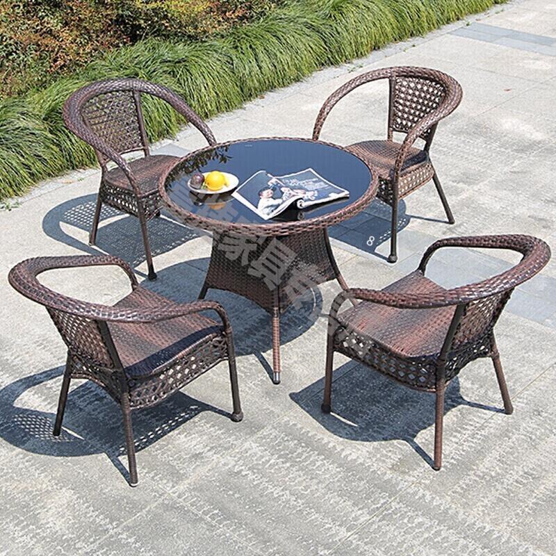 Outdoor Rattan Woven Folding Tables And Chairs Leisure Courtyard Five Or Three Piece Set Sun Umbrella Combination 90 CM Rattan Square Table + Chair
