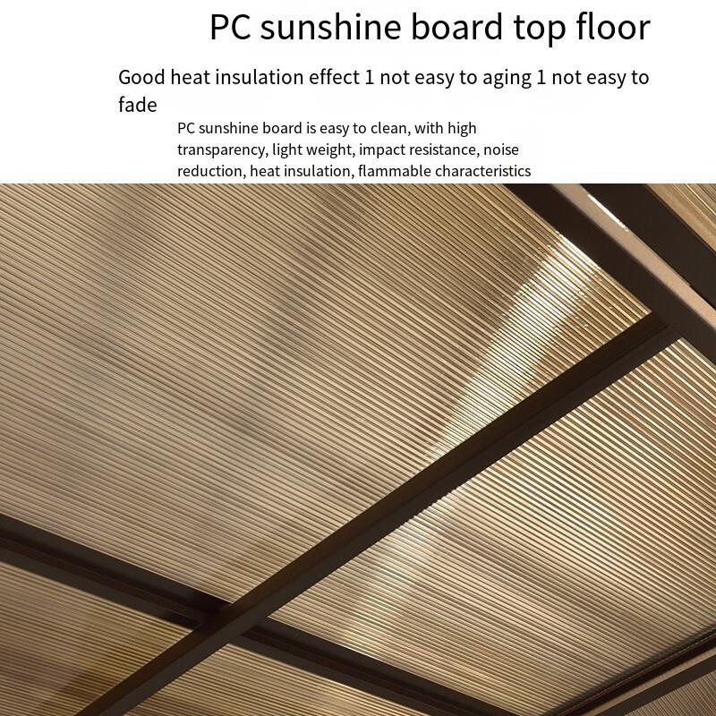 Made of galvanized steel, high-density and stablePC sunshine board top layer, good heat insulation effect