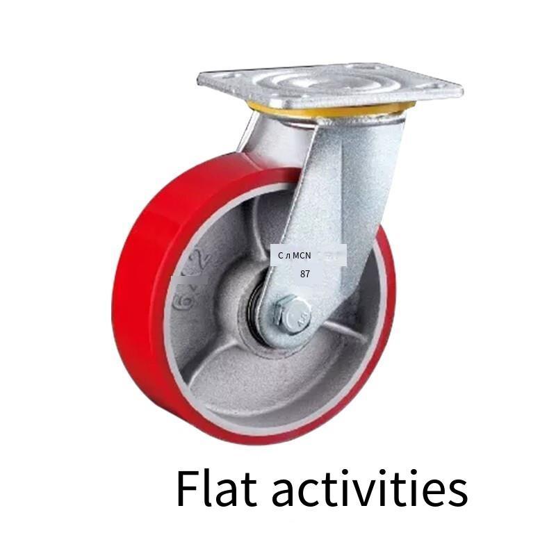Plate Swivel Caster 6 Inch Flat Bottom Movable Casters Heavy Duty Iron Core Red Polyurethane Caster Universal Wheel - 1Pcs