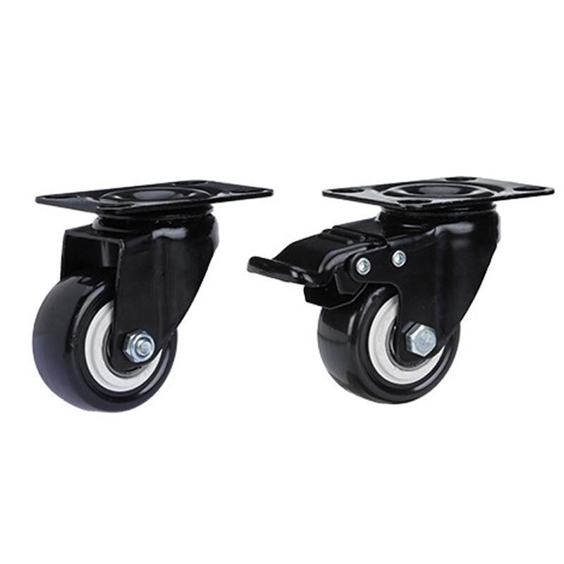 Black Diamond, Silent And Wear-resistant PU Polyurethane Caster, Industrial Universal Wheel, Flat Wheel, Wheel, Roller, 2-inch Orientation (2 Pieces) + Brake (2 Pieces)