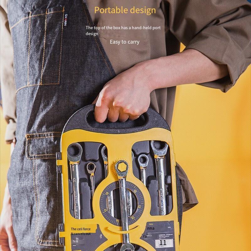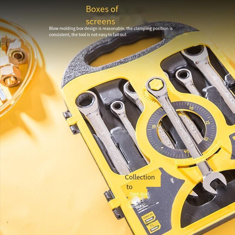 Quick ratchet dual purpose wrench specification: 8 × 1. No.10 × 1. 12 × 1. 13 × 1. 14 × 1. 17 × 1. 19 × 1 plastic box × one