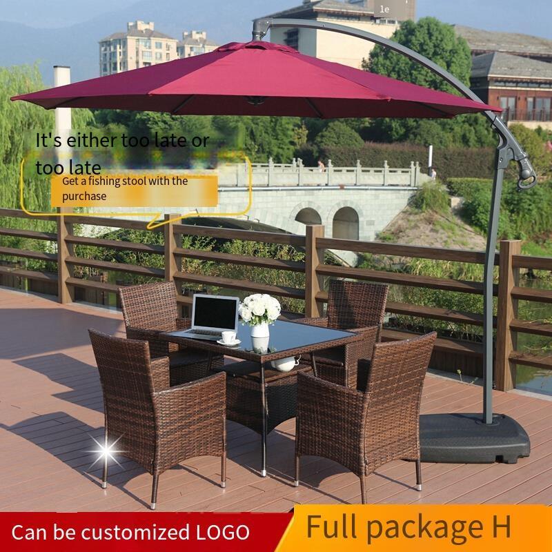 Rattan Woven Outdoor Tables And Chairs Courtyard Leisure Furniture Garden Iron Balcony Outdoor Tea Table Sunshade Combination Package 20