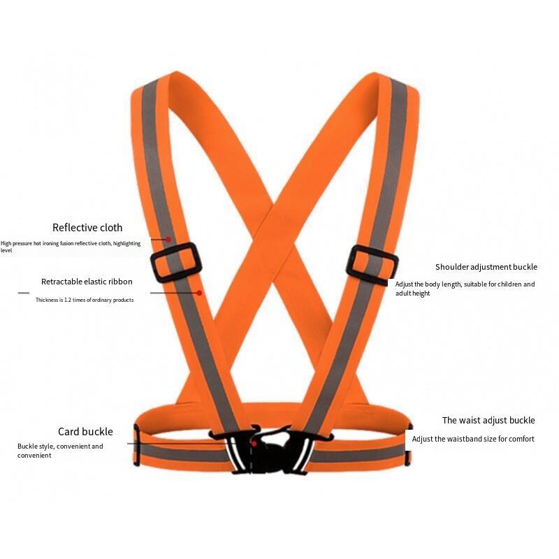 Safety Straps Reflective Safety Vest High Visibility Adjustable Elastic Strap for Running Jogging Cycling Walking in Night - Orange