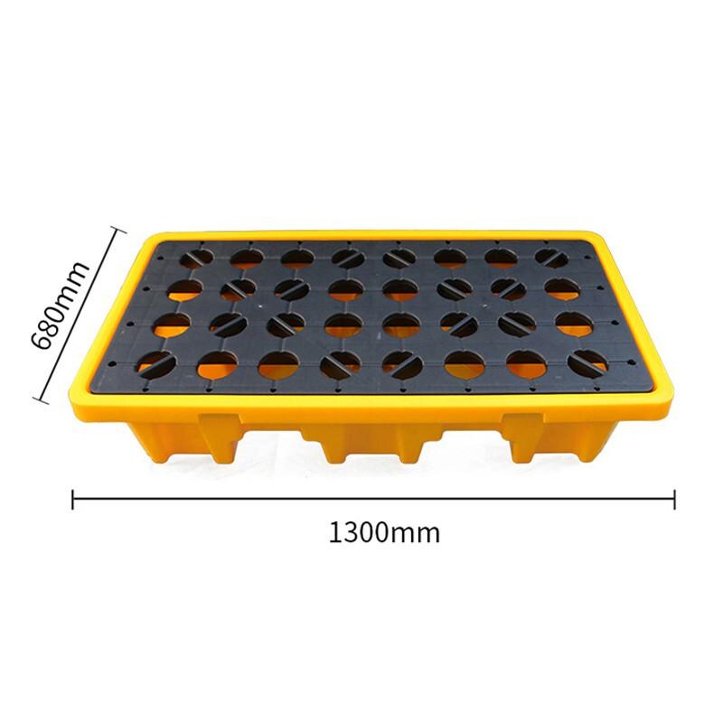 Spill Pallet Two Drums Pallet 120 Liters Spill Capacity 130*680*300mm Injection Molding Process Leak-proof Pallet Platform Chemical Warehouse Oil Container Petroleum Drums Dangerous Waste Liquid Oil Pan