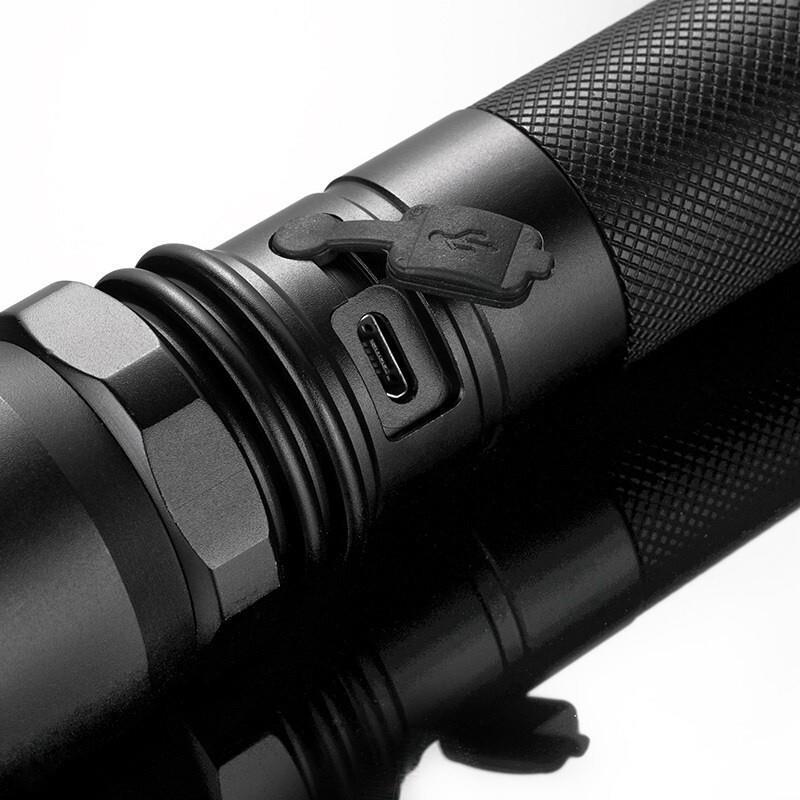 Flashlight + 18650 purple Battery + USB charging cable
